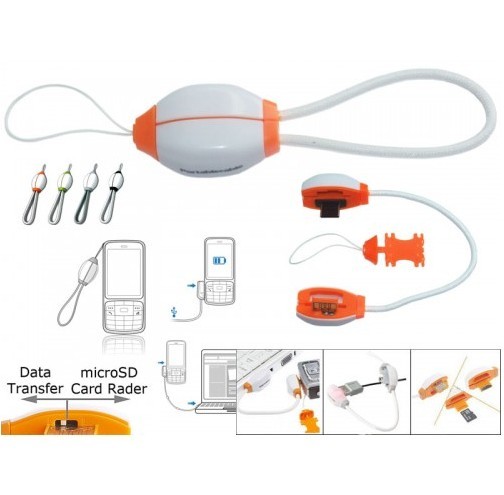 All-in-1 Multi-functional Smart Cable USB = USB charging cable + Data transfer + microSD Card Reader + USB flash drive + Phone strap This is the latest technology of the Smart Cable USB, it works for android smart phone, iphone, ipad etc.